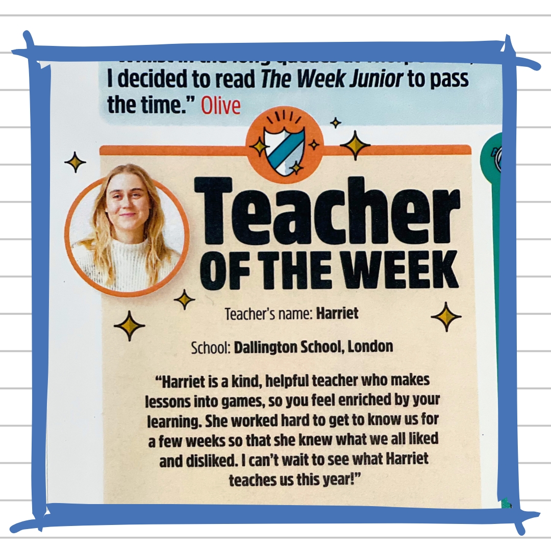 At Dallington School, we love to see our values come to life in meaningful ways, and this term, we have an especially proud moment to celebrate! One of our Year 4 children recently took the initiative to nominate their teacher, Harriet, for Teacher of the Week in The Week Junior UK. This heartfelt gesture was successful, and the recognition in print has brought excitement and joy to our entire school community.